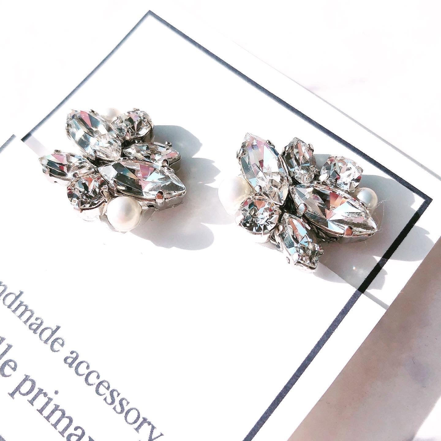 大粒のクリスタルガラスにパールをあしらい、1つでも存在感のあるデザインです✨