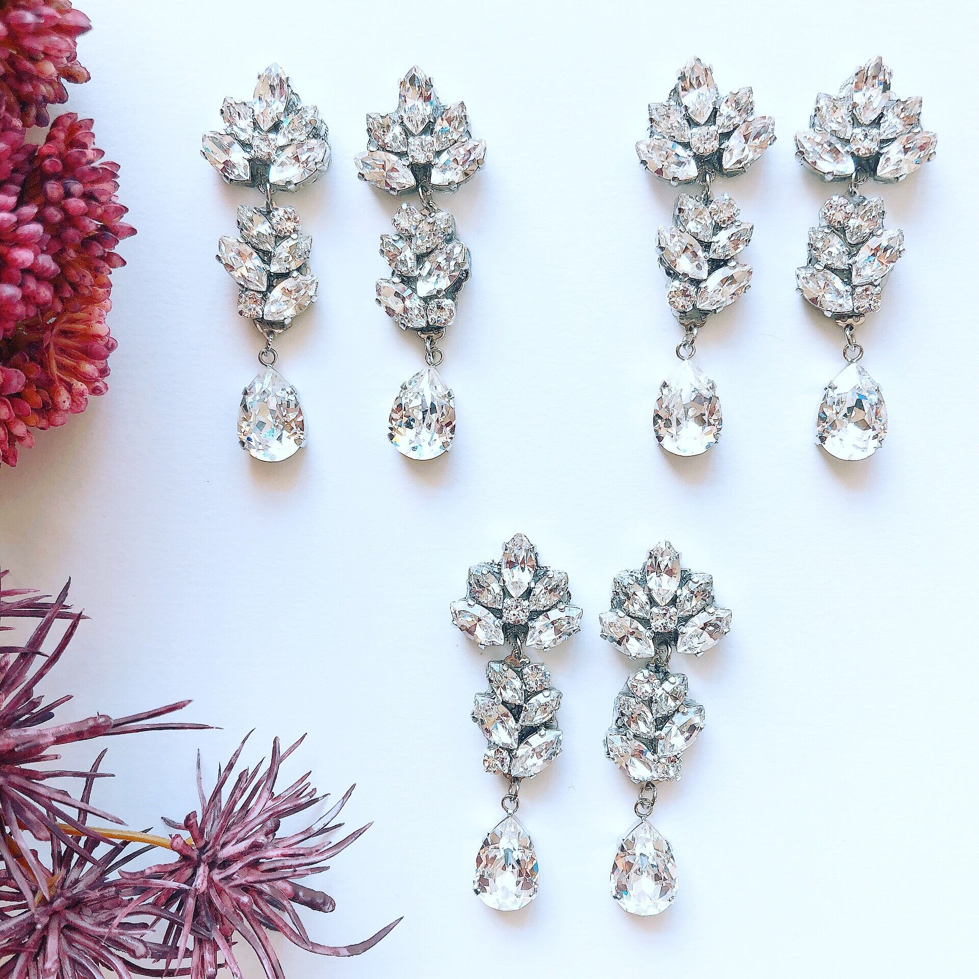 3連のクリスタルガラスがゆらゆらと揺れるたびに輝き、花嫁様のことをより一層美しく見せてくれるアイテムです。