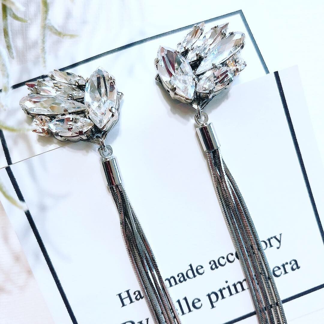 細身のクリスタルガラスとタッセルを組み合わせ、スタイリッシュな印象を与えてくれるアクセサリーです✨