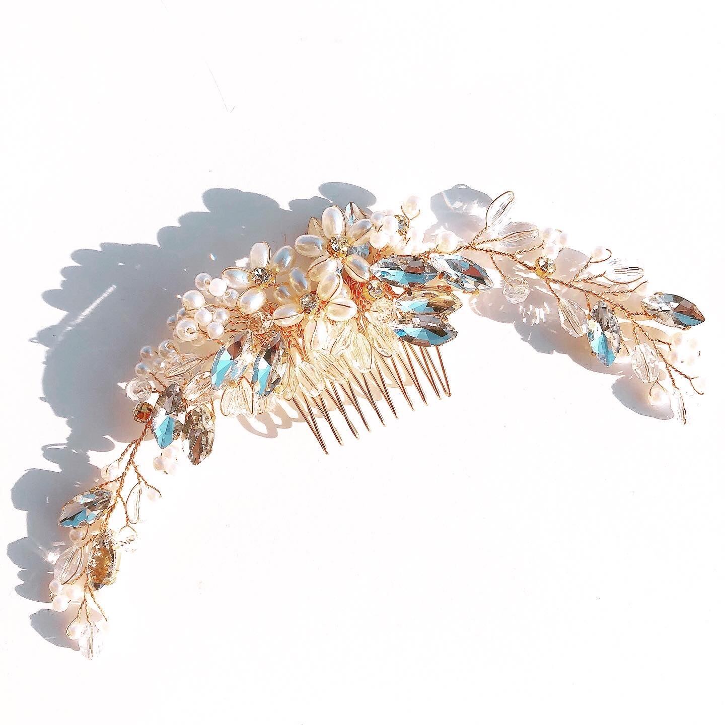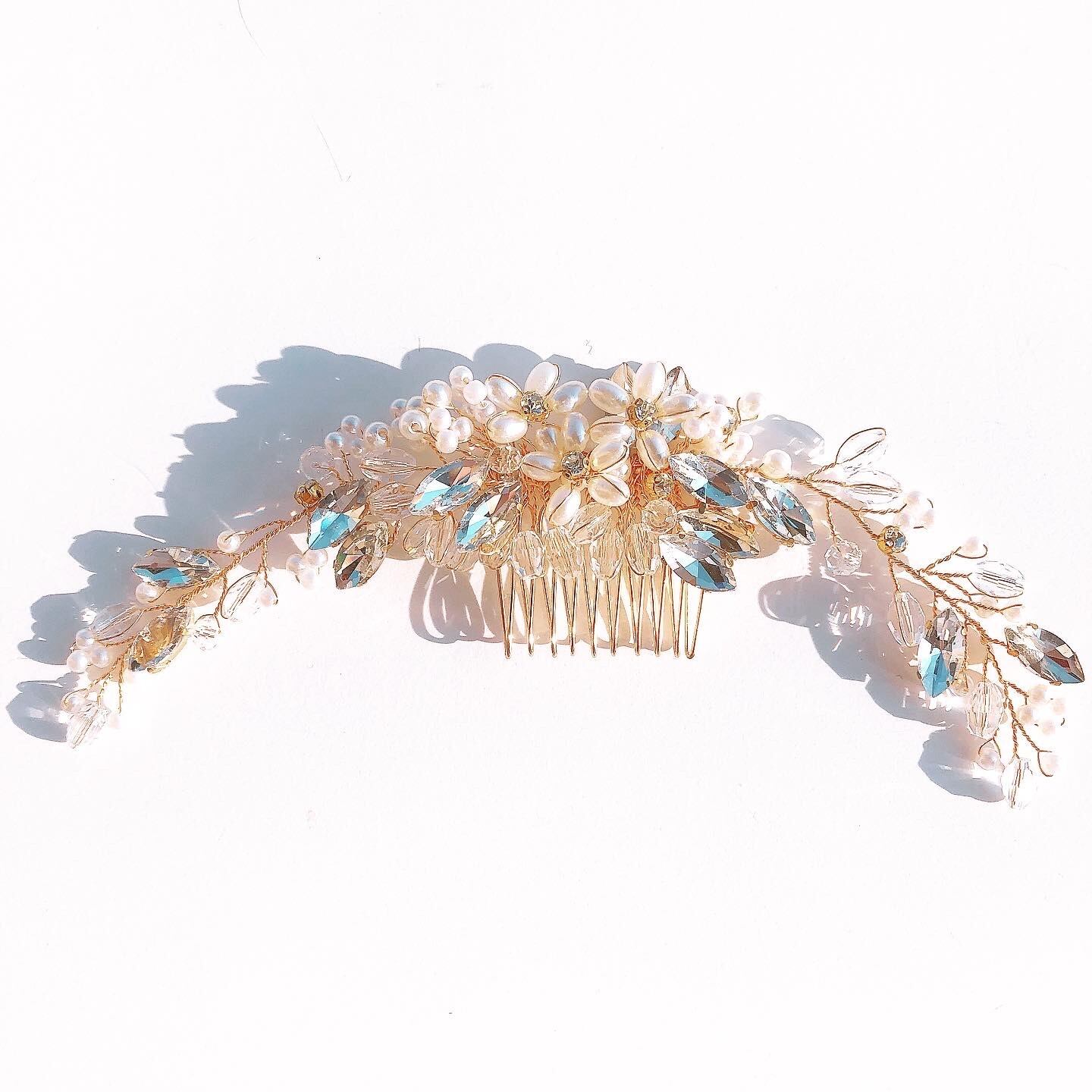 中央のボリューム感と枝分かれしたビーズとパールがヘアスタイルを華やかにしてくれます✨