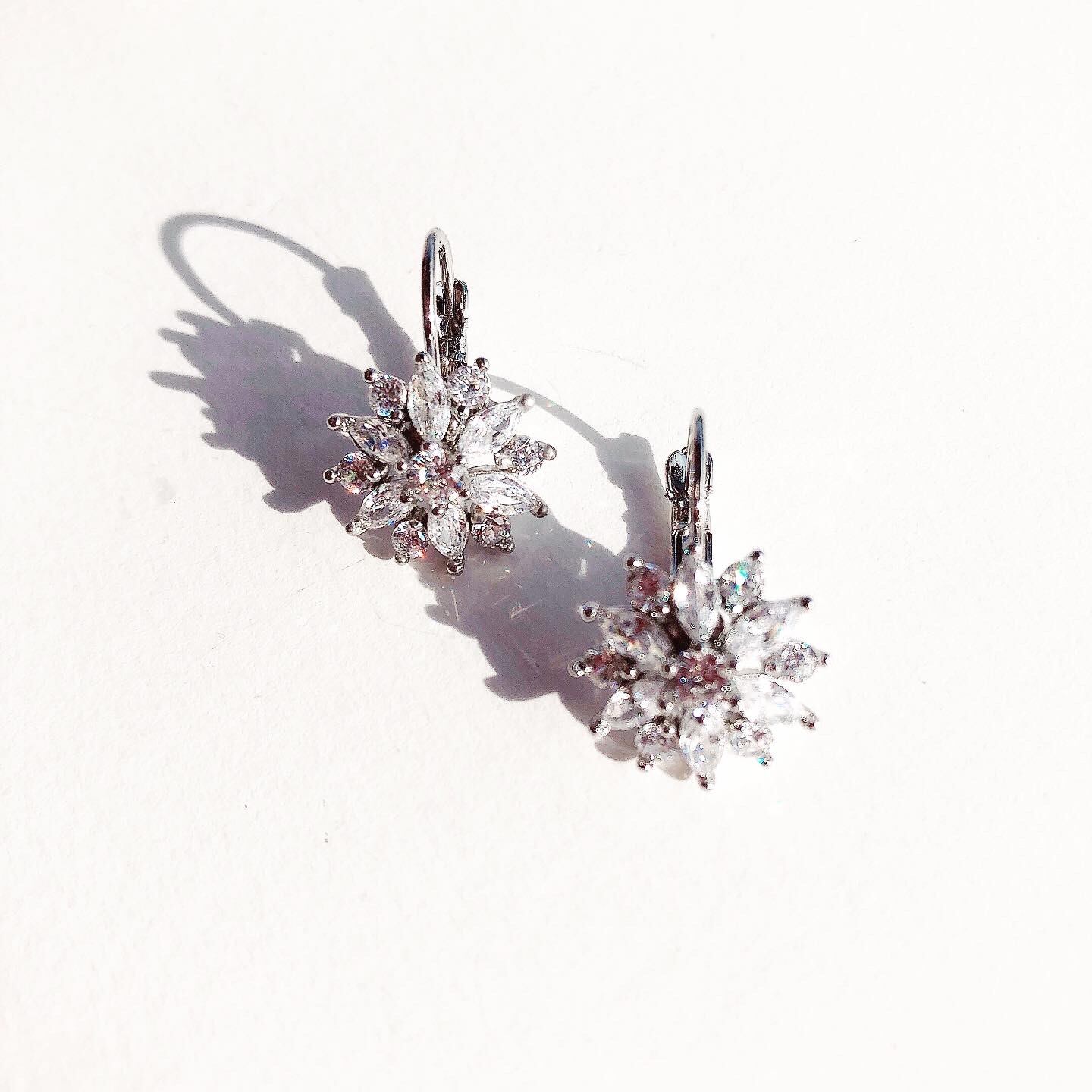 クレマチスのようなお花の形をしたジルコニアのモチーフが可愛らしいピアスです。