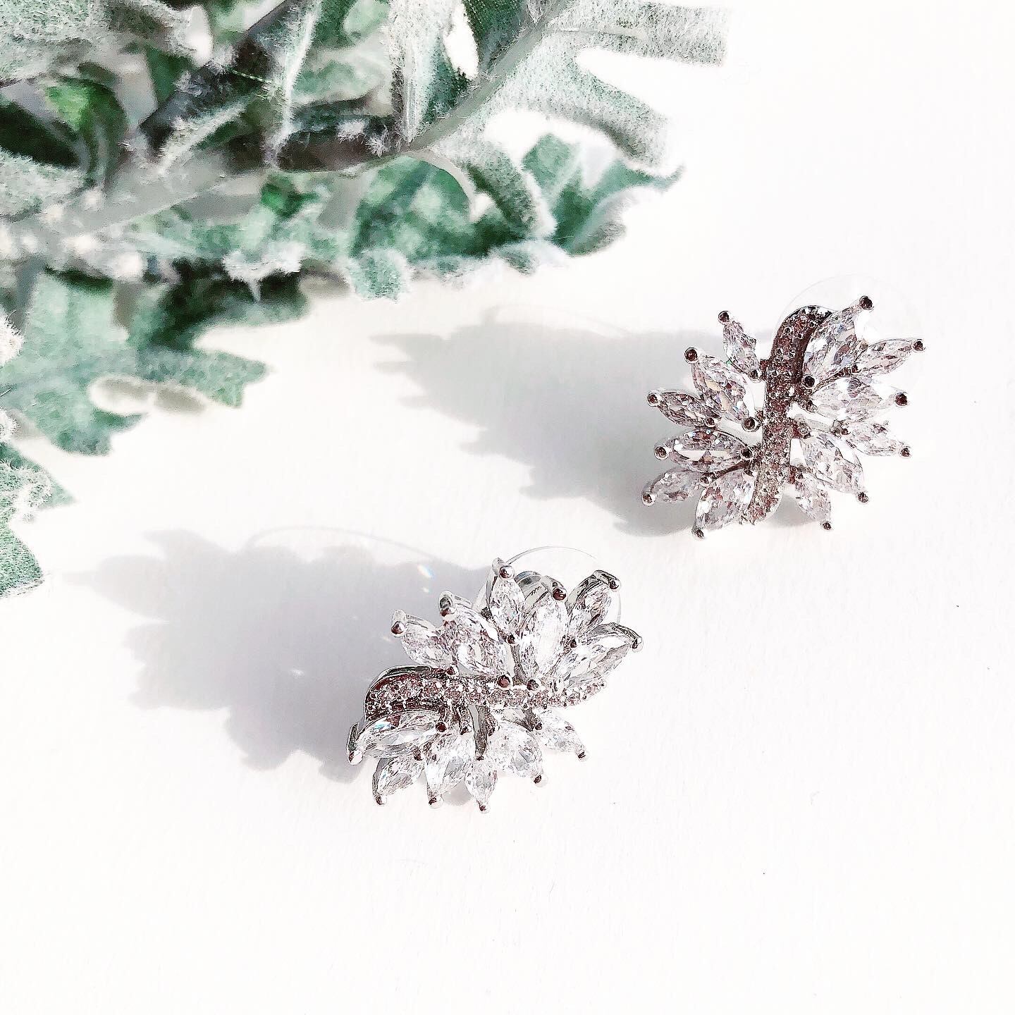 ウェーブしたジルコニアのモチーフを花が開いたように華やかに取り巻くエレガントなピアスです。