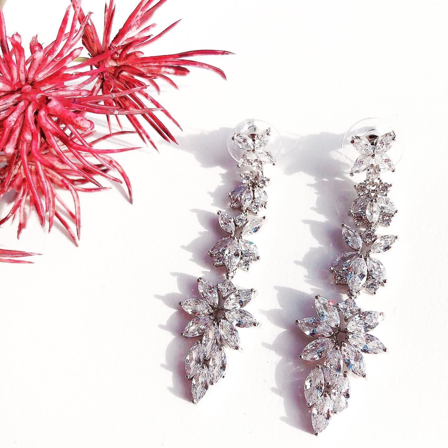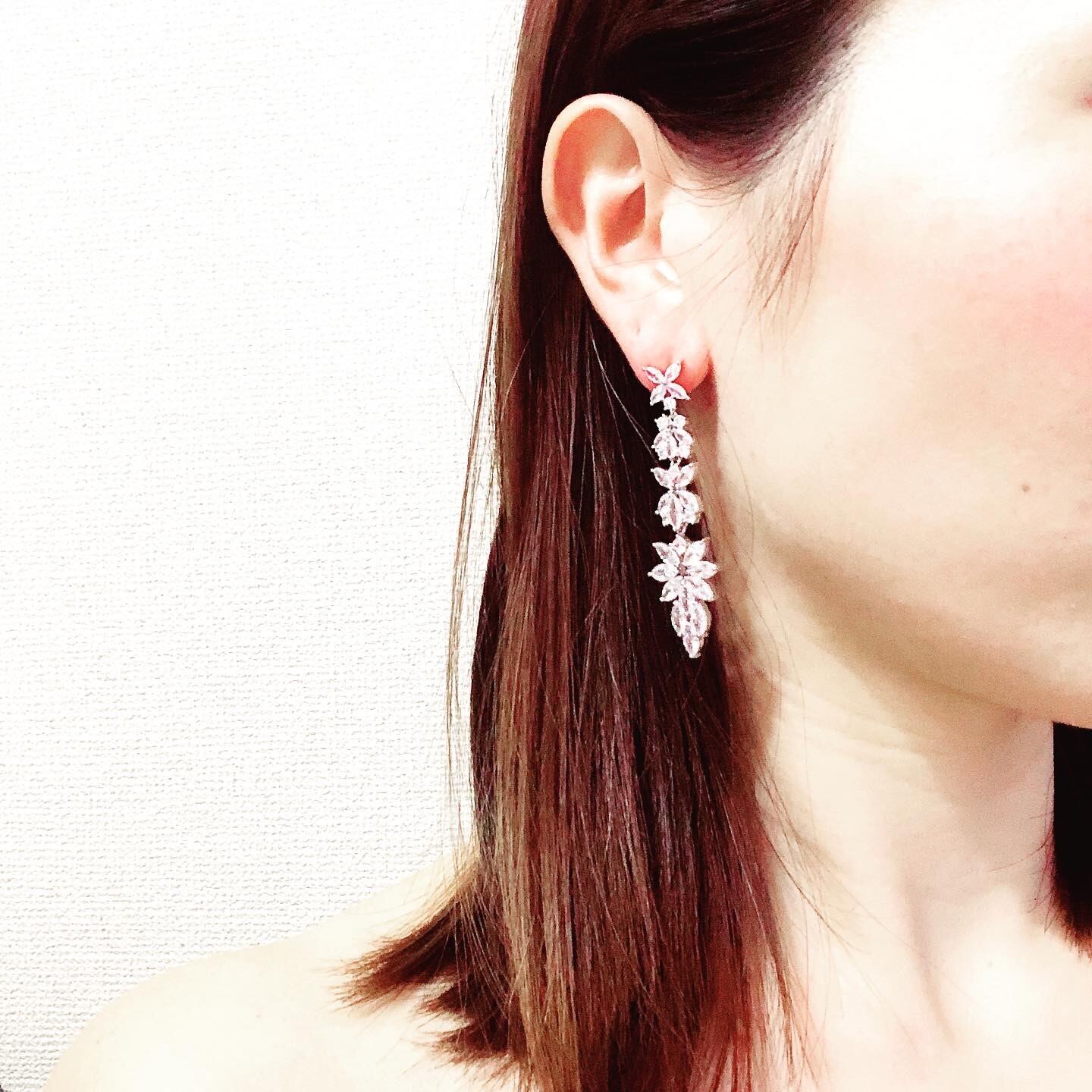 ジルコニアの細かな花のモチーフが連なった、エレガントなピアスです。